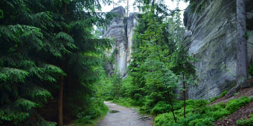 Podróżując w stronę Polski przez Harrachov, warto zatrzymać się w Czeskim Raju – zaledwie godzinę drogi od granicy. To jedno z najbardziej malowniczych miejsc w Czechach, słynące z bajecznych form skalnych, punktów widokowych i podziemnych jezior. Region został wpisany na listę Geoparków UNESCO i jest rajem dla pieszych wędrowców.