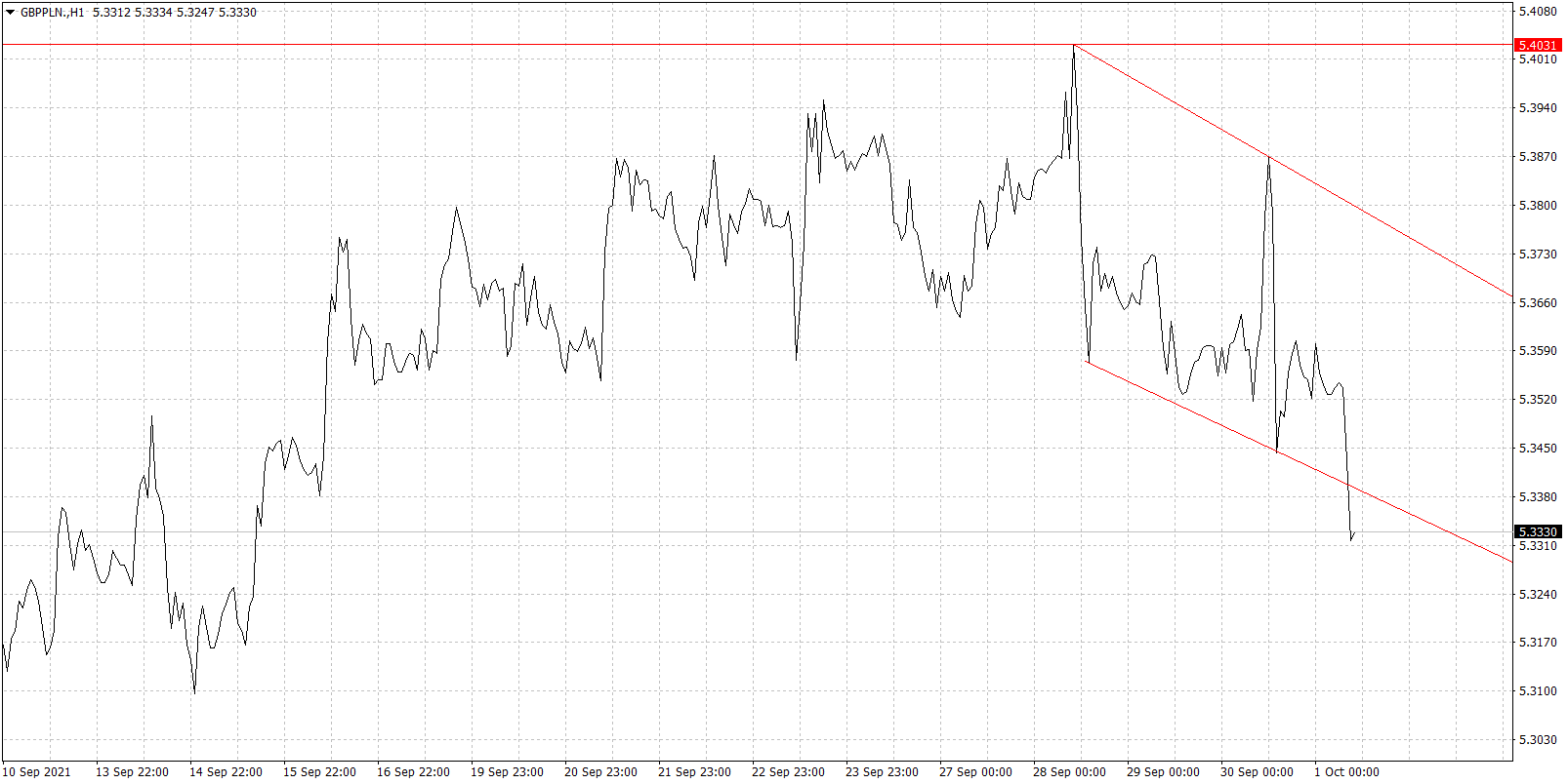 Wykres kursu funta do złotego, interwał 1-godzinowy