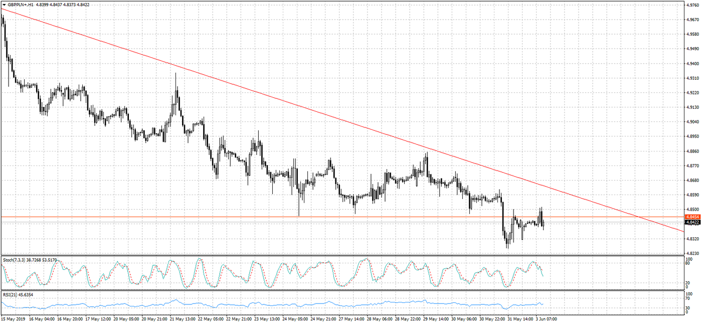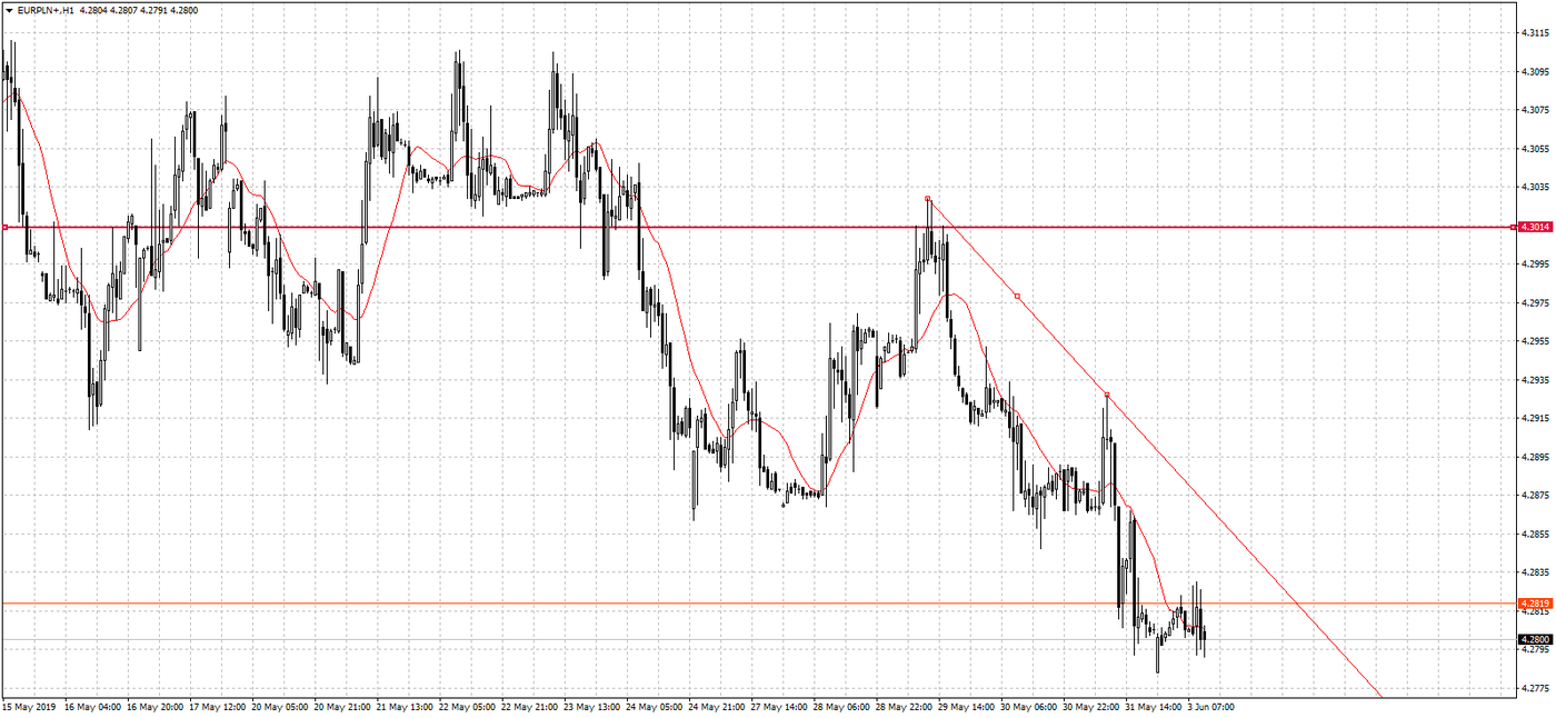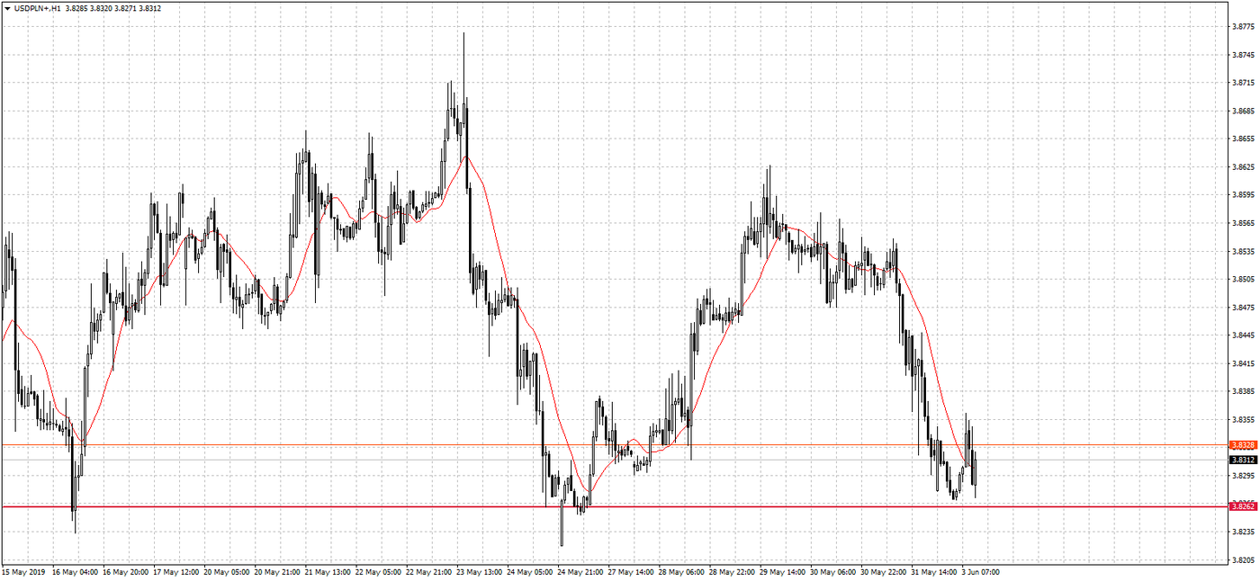 Notowania USD/PLN, wraz z uformowanym trendem spadkowym, dotarły do silnego poziomu wsparcia w okolicy 3,83 zł. Osłabienie amerykańskiej waluty spowodowane jest przede wszystkim rozpoczętymi konfliktami, nie tylko tymi handlowymi. Dodatkowo głosy i odczyty świadczące o spowolnieniu amerykańskiej gospodarki, nie pomagają notowaniom dolara. Jednak realny obraz stanu amerykańskiej gospodarki otrzymamy dziś i w środę. Jako pierwszy poznamy indeks ISM dla przemysłu, z kolei w środku tygodnia opublikowane zostaną dane z sektora usług. Ponadto w ten piątek przypada pierwszy piątek miesiąca i tradycyjnie nadejdą wieści z amerykańskiego rynku pracy. Biorąc wszystkie te wydarzenia pod uwagę, możemy spodziewać się zwiększonej zmienności na dolarze.