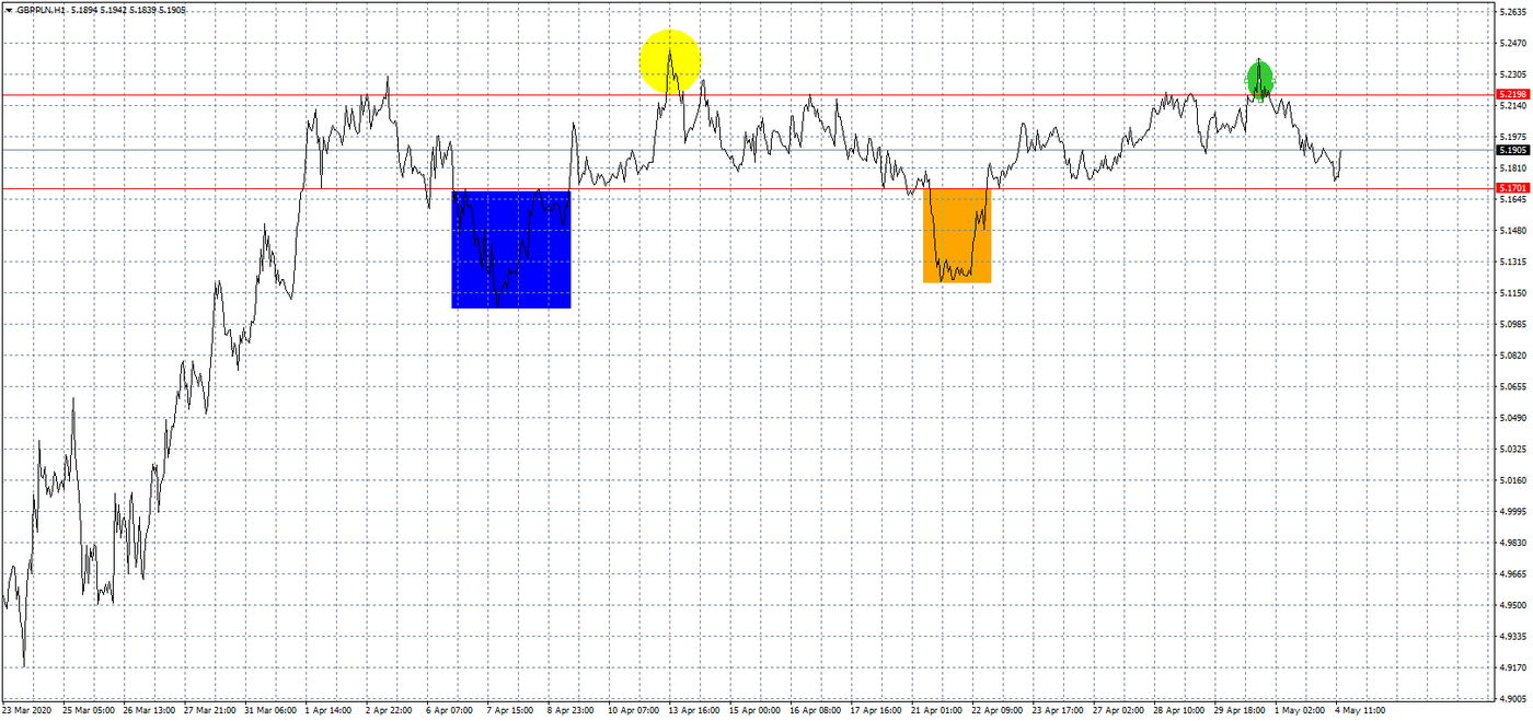 Wykres kursu funta do złotego, interwał 1-godzinowy