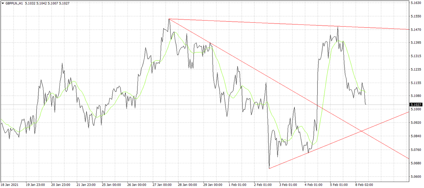 Wykres kursu funta do złotego, interwał 1-godzinowy