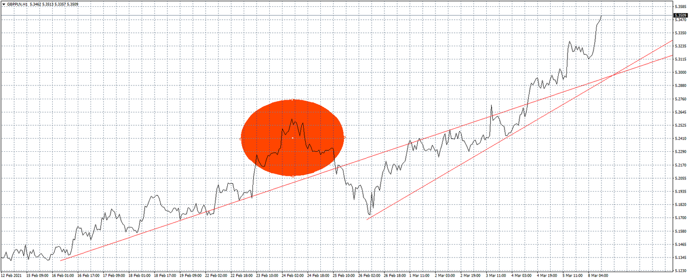 Tak naprawdę jednak o słabości złotego najlepiej świadczy wykres EURPLN. Wspólna waluta w ostatnim czasie radzi sobie co najwyżej kiepsko, momentalnie zahaczając o fatalnie, a mimo to i tak dystansuje naszą walutę jak Bolt Makłowicza. Przełom lutego i marca przyniósł wyłamanie konsolidacji i rozpoczęcie kanału wzrostowego, który co ważne został wybity górą. Oznacza to, że powoli osiągamy efekt kuli śnieżnej, a wyprzedaż złotego tylko i wyłącznie się rozpędza. Skala ruchu jest oczywiście mniejsza niż w przypadku dolara, jak narazie euro podrożało o 12 groszy, co i tak pozwoliło na wyznaczenie tegorocznych maksimów. Rajd był tak intensywny, że nie zatrzymał się nawet na moment, by podziwiać piękne szczyty zarysowane w grudniu. Co więcej, wygląda na to, że ubiegłoroczne maksima również nie zrobią na nikim wrażenia. A jest to o tyle ważne, że by znaleźć droższe euro będziemy musieli się cofnąć aż do 2009 roku. Prehistoria – wystarczy wspomnieć, że mówimy o czasach, gdy uczono studentów, że stopy procentowe nie mogą spaść poniżej zera. O słodka naiwności.