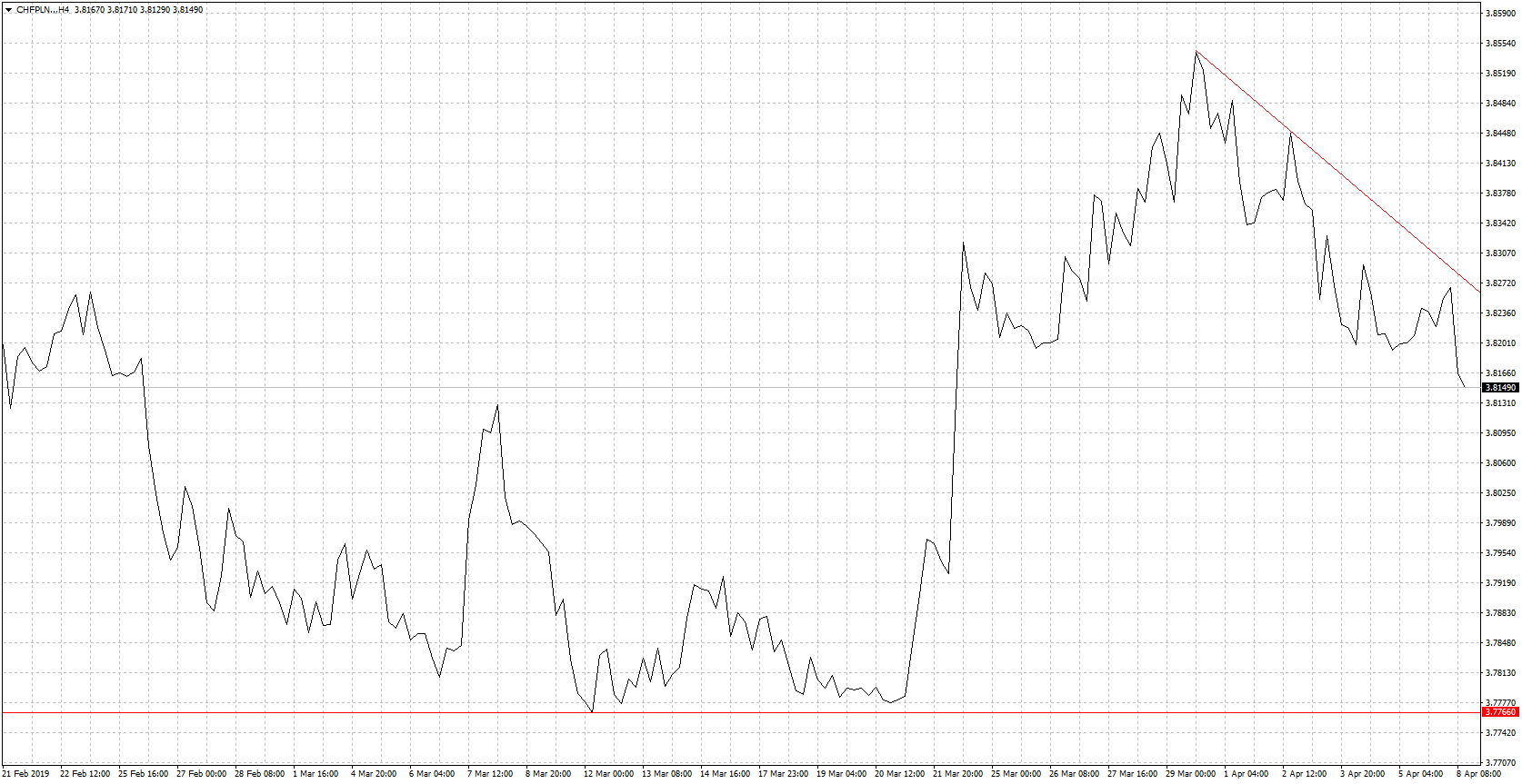 Dobry tydzień dla walut rynków wschodzących widać również po kwotowaniach CHF/PLN, który spadł o ponad 4 grosze. Postęp w negocjacjach USA z Chinami spowodował, że waluty uznawane za bezpieczne pozostawały w defensywie. W tym tygodniu nie zanosi się na zmianę nastawienia inwestorów więc CHF/PLN ma szansę dalej obrać kierunek południowy. Czynnikiem ryzyka będzie środa kiedy to odbędzie się szczyt UE w sprawie brexitu. Kwestia jest przedłużenia terminu wyjścia Wielkiej Brytanii ze struktur unijnych tym razem do 30 czerwca. Unijni decydenci są skłonni zaakceptować wniosek ale pod warunkiem przedstawienia konkretnych planów co dalej przez May. W środę mamy też posiedzenie EBC jeśli Draghi zacznie sygnalizować dalszą chęć luzowania w gospodarce to z pewnością EUR/CHF zanurkuje w dół na bazie słabości euro. W efekcie CHF/PLN może wzrosnąć kilka gorszy. Nie można też zapominać o zapiskach z posiedzenia Fed, które również w środę. Jeśli FOMC nie zasygnalizuje podwyżek stóp a wręcz pokaże sens wyceniania obniżek stóp to spowoduje dalszy rajd ryzyka. Wydaje się więc, że kredytobiorcy frankowi mogą liczyć na nieco niższe raty kredytu ale pamiętajmy jaki jest rynek finansowy zaskoczenia na pewno być mogą.