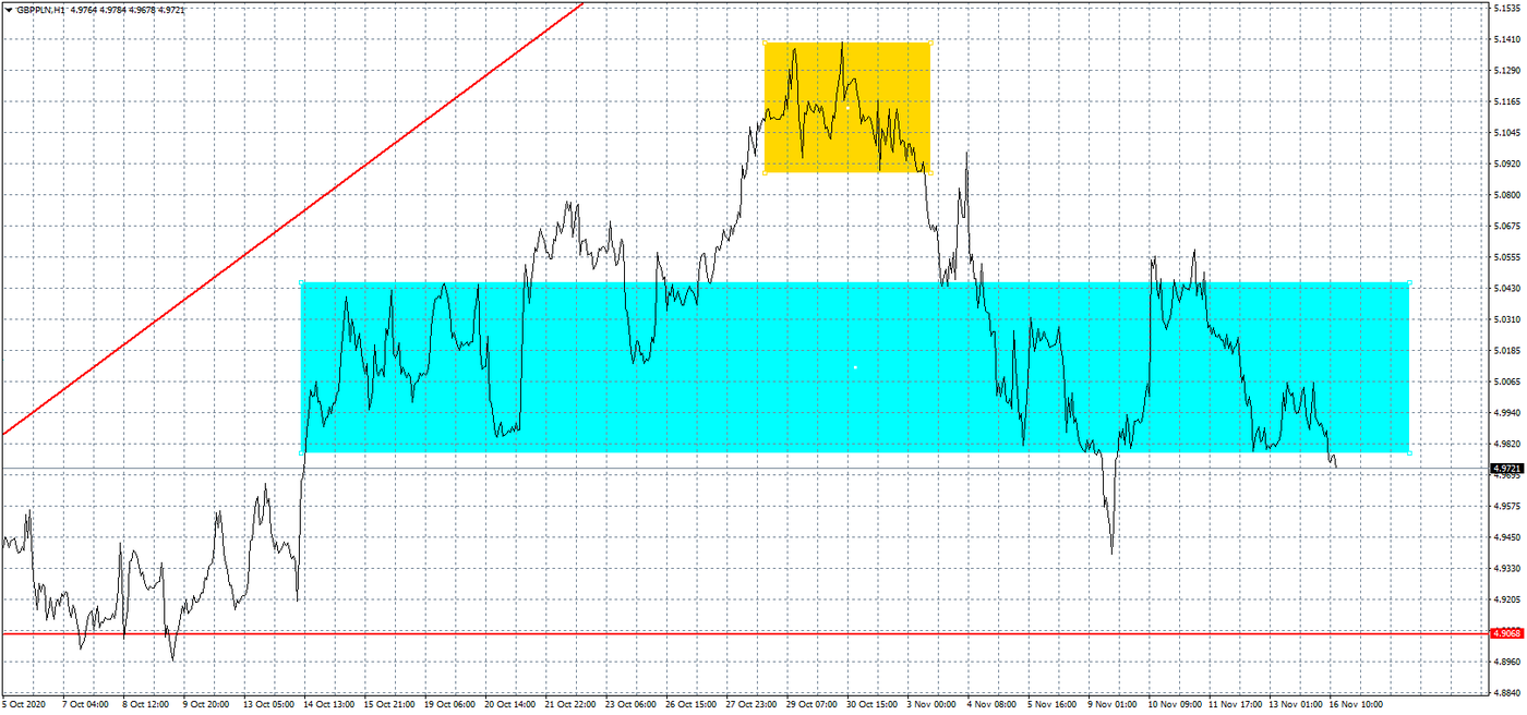 Funt w ostatnim czasie znajduje się w odwrocie, tracąc już blisko 20 groszy od szczytów z przełomu października i listopada. Wtedy brytyjska waluta kosztowała już nawet 5,15 zł, ale kurs GBP/PLN ostatecznie się załamał pod narastającą presją kolejnych czynników. Głównym z nich jest zmiana globalnego sentymentu, która faworyzuje w tej parze złotego. Jednak funt ma też sporo własnych problemów, które coraz mocniej mu ciążą. I o ile można podchodzić z dystansem co do rosnących liczb w walce z koronawirusem, bo przecież Polska radzi sobie w tym temacie jeszcze słabiej, tak pozostałe tematy są już mocno anty funtowe. Przede wszystkim widmo dalszego cięcia stóp na wyspach jest znacznie bardziej wyraziste niż w Warszawie. Jak na razie Bank Anglii ograniczył się tylko do zwiększenia skali programu skupu aktywów, jednak ruchy na koszcie pieniądze wciąż pozostają w grze i niewykluczone, że dojdzie do nich jeszcze w tym roku. Dodatkowo rośnie chaos w sprawie negocjacji z Brukselą po tym, jak do dymisji podał się Dominic Cummings. Był on jednym z najważniejszych doradców Borisa Johnsona oraz głównym architektem strategii brexitowej. Oficjalnie powodem rezygnacji nie jest impas w rozmowach z Brukselą, jednak rynki wiedzą swoje. Zegar tyka, jesteśmy już grubo po wszystkich racjonalnych deadlinach, a porozumienia jak nie było, tak nie ma.