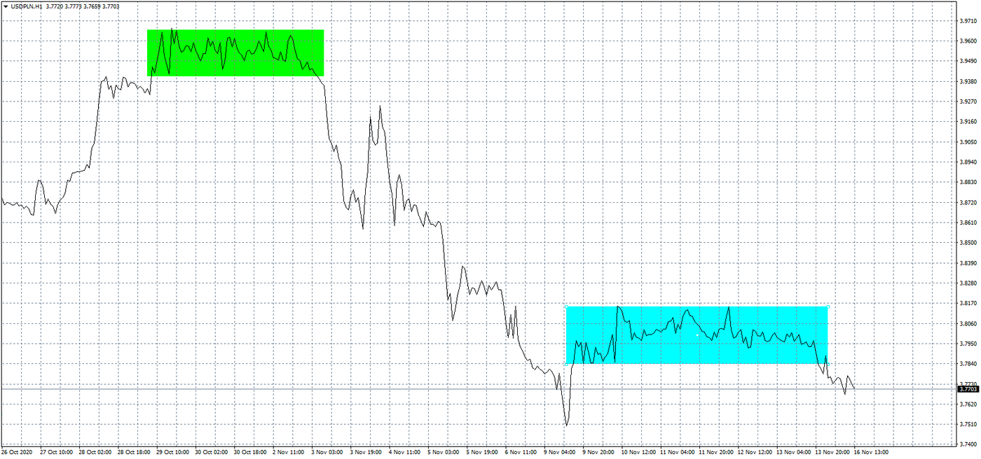 Dolar, po tym jak pod koniec października dotarł do lokalnych szczytów przy 3,96 zł, wszedł w dość nietypową konsolidację. Na pierwszy rzut oka wyglądała ona na książkową formację flagi, sugerującą tylko krótki postój przed dalszym marszem w górę. Jednak konsolidacja niespodziewanie się przeciągnęła na kilka dni, dając pretekst sprzedającym dolara do ataku. Po tym, jak kanał został wybity dołem, rozpoczął się trend spadkowy, który sprowadził kurs USD/PLN w okolice 3,75 zł. Zaledwie tydzień wystarczył, by dolar potaniał o ponad 20 groszy, co też pokazuje, w jakim momencie się obecnie znajdujemy na rynku. Inwestorzy są co rusz zalewani nowymi impulsami, przez co dość łatwo poddają się emocjom. Z drugiej strony teraz jeszcze bardziej wzrósł relatywizm każdej informacji. Ameryka po wyborach prezydenckich weszła w specyficzny okres przejścia władzy z jednego obozu do drugiego. Potrwa on najprawdopodobniej do 20 stycznia, kiedy to kończy się kadencja Donalda Trumpa. W Stanach Zjednoczonych odchodzącego prezydenta określa się mianem lame duck, co ma ukazywać, że choć formalnie ciągle ma kontrolę nad urzędem, to jednak jego władza jest już w pewnym stopniu ograniczona. Dlatego inwestorzy z każdej decyzji Trumpa mogą wybierać, co im pasuje i pod to grać, zrzucając ignorowanie niewygodnych dekretów na zbliżający się reset w Białym Domu. Jak choćby groźne wymachiwanie szabelką w kierunku Chin, które praktycznie przeszło bez echa.