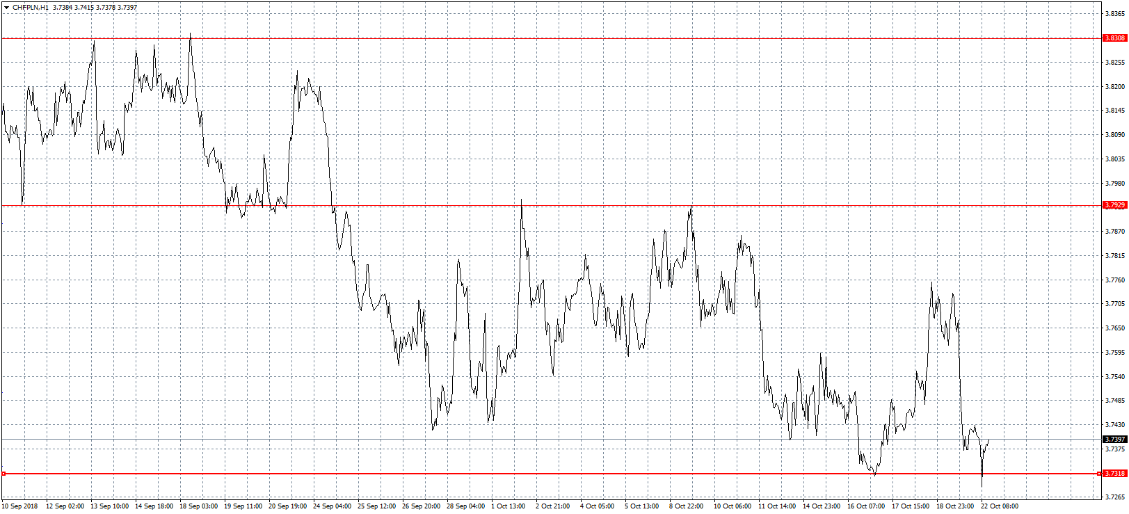 W zeszłym tygodniu przycichł także temat wojny handlowej między Stanami a Chinami. Giełdy za Wielkim Murem wyraźnie krwawiły i pojawiły się obawy czy tamtejsze załamanie nie wyleje się na pozostałe rynki. Tak się jednak nie stało i prawdopodobnie już nie stanie. W życie właśnie wchodzi szereg rozwiązań władz z Pekinu mające na celu zatrzymania czerwonego rajdu na parkietach. Oprócz ulubionego narzędzia chińskiego rządu czyli zwiększenia lewaru zaproponowane zostały zmiany proobywatelskie takie jak choćby zmniejszenie stawki podatkowej, czy zwiększenie ulg. Odbicie na parkiecie w Chinach może zwiastować zmniejszenie awersji do ryzyka, na czym powinien skorzystać złoty. W nadchodzącym tygodniu znowu możemy być świadkami próby zejścia poniżej 3,70 zł. Z drugiej strony najbliższy silny opór wypada w okolicach 3,77 zł i wydaje się mało prawdopodobne, by w najbliższych dniach dolar był w stanie go złamać.