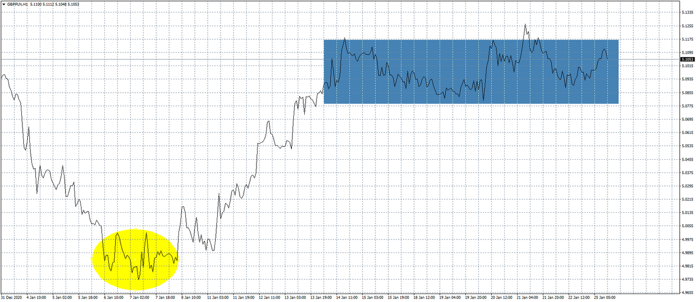Wykres kursu funta do złotego, interwał 1-godzinowy