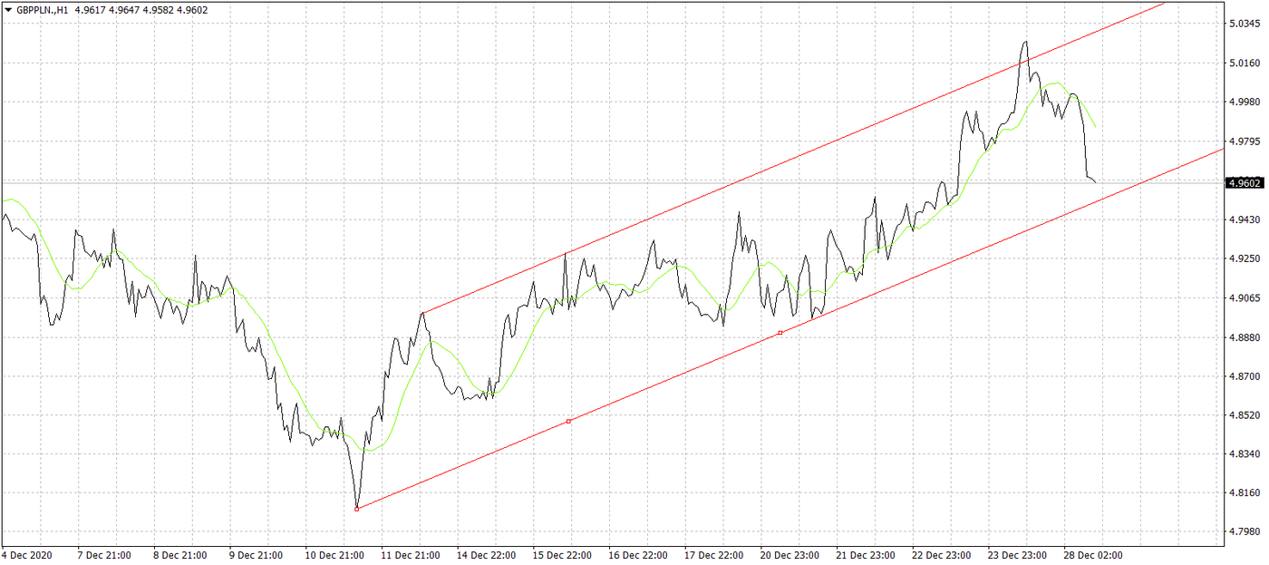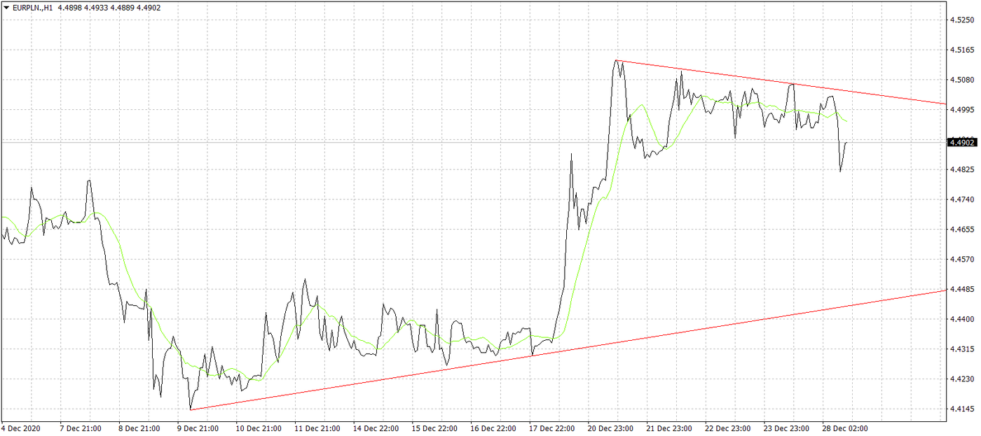 Bez wątpienia informacja z Wigilii o dogadaniu się Wielkiej Brytanii z UE była niemałym szokiem dla inwestorów. Gdzieś tam w kuluarach tliła się szansa na porozumienie, ale obie strony nie dawały za wygraną i zgodnie twierdziły, że od początku stycznia nastąpi kontynuacja rozmów. Tymczasem nagle okazało się, że umowa jest na stole. I w końcu rozwiązała się saga, której chyba już niemal każdy miał trochę dosyć. Podpisana umowa handlowa będzie obowiązywać od 1 stycznia, a więc od daty ostatecznego brexitu. Co ciekawe, na funcie nie widać eksplozji radości. Kurs brytyjskiej waluty niemal nie zareagował, co można z jednej strony tłumaczyć sprzedażą faktów, a z drugiej jednak panującym okresem świąt. Można też odnieść wrażenie, że w końcu do inwestorów dotarła informacja, że Wielka Brytania jest już obiema nogami poza UE i czeka ją ciężki czas. Sytuację dodatkowo podbija fakt lockdownu, który ma miejsce na Wyspach, w związku z pojawieniem się nowej mutacji wirusa. Pytanie, jak długo taki stan może się utrzymać, skoro nadal statystyki koronawirusowe w Wielkiej Brytanii się nie poprawiają. W efekcie, na wykresie GBP/PLN nie obserwujemy wzrostów, a wręcz przeciwnie kurs spada poniżej 5,00.