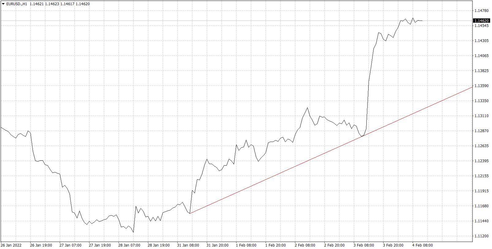 Wykres kursu euro do dolara, interwał 1-godzinowy