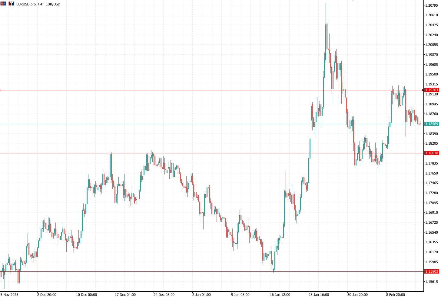 Wykres kursu euro do dolara, interwał 4-godzinowy