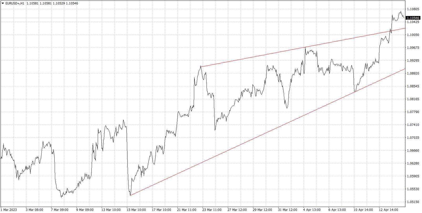Wykres kursu euro do dolara, interwał 1-godzinowy