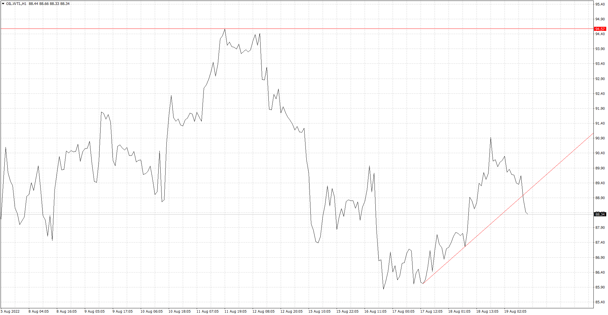 I na koniec rzut oka na wykres ropy naftowej. Od poziomu 95 USD za baryłkę widzieliśmy trend spadkowy, który przecenił czarne złoto do poziomu 85. Od tego momentu widzieliśmy kontrę kupujących i kurs znów poszybował w górę do lokalnego oporu na poziomie 90 USD. Powrót do silnego USD na szerokim rynku nie daje jednak wyboru i kurs znów przechodzi w trend spadkowy. Wydaje się, że możliwy jest ruch w okolice ostatniego minimum i będzie to test wsparcia w tym miejscu. Często notowania ropy naftowej są skorelowane z zachowaniem kursu właśnie popularnego “edka”. Oczywiście nie można zapominać o fundamentach, a tutaj decydujące okazały się obawy inwestorów o recesję na świecie, która miałaby niebagatelny wpływ na zmniejszenie popytu na ropę naftową. Co dalej? Technicznie decydujące będzie, czy EUR/USD złamie teraz poziom wsparcia, czyli parytetu. Jeśli tak, to możliwy jest dalszy ruch spadkowy na notowaniach czarnego złota. Jaki plus z takiej sytuacji? Bez wątpienia będzie widoczny na wskaźnikach inflacji, niższe ceny paliw przełożą się choć w części na zmniejszenie presji na wzrost cen.