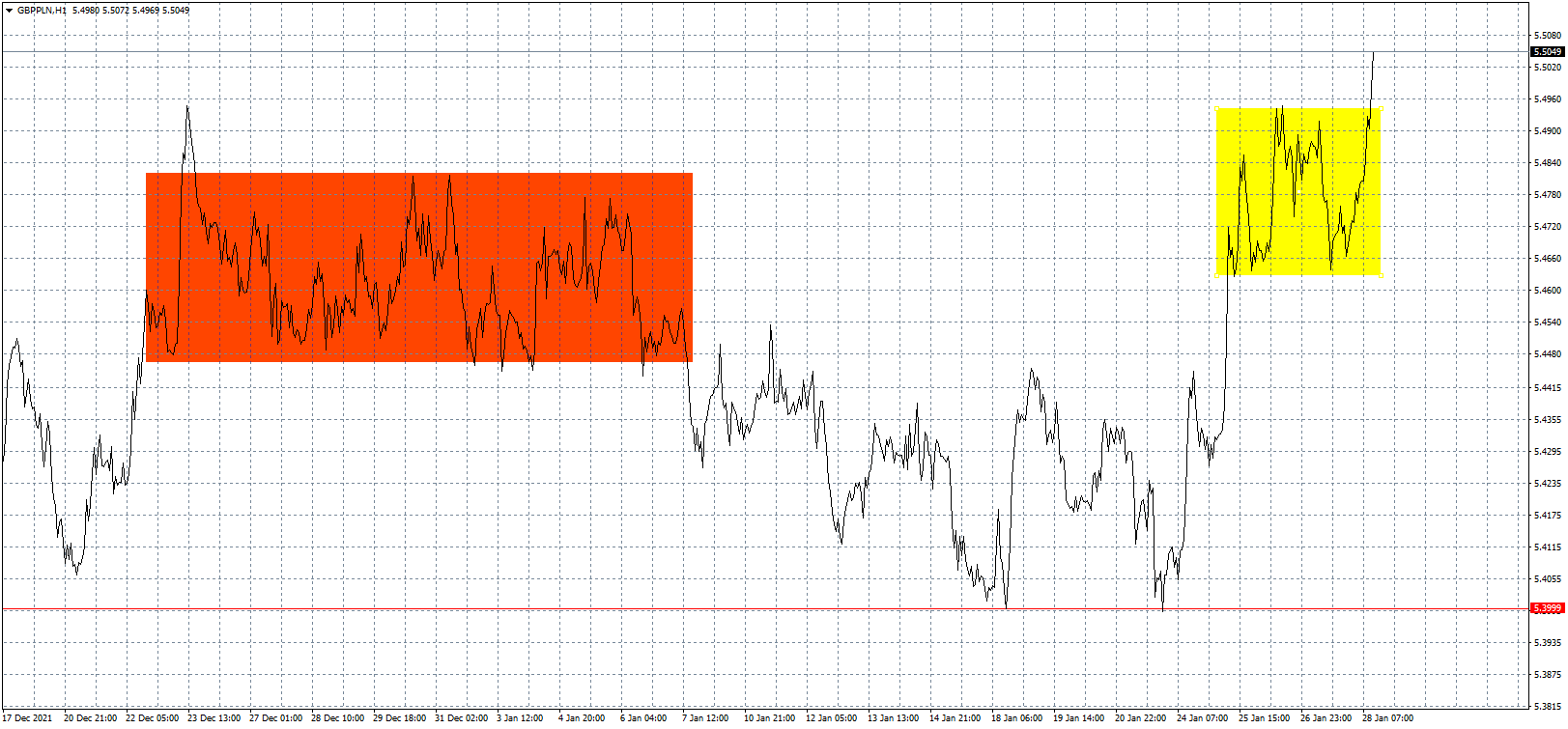 Frank kolejny raz korzysta na łatce waluty uznawanej za safehaven. Ma to kluczowe znaczenie przede wszystkim ze względu na potencjalny konflikt Rosji z Ukrainą. Po pierwsze nasz złoty jest na pierwszej pośredniej linii frontu, przez co jest wyjątkowo czuły na każde doniesienie medialne w tej sprawie. A tych w tym tygodniu nie brakowało i zdecydowanie przeważały negatywne informacje. Z drugiej strony beneficjentem odpływu kapitału z ryzykownych aktywów naszego regionu zawsze staje się frank i tak jest również obecnie. Co więcej, Szwajcarzy jako jedni z nielicznych nie mają problemów z inflacją (coraz mocniej pod tym względem przypominają Japonię i to nie jest komplement). Wydaje się, że wszystkie ostatnie sztormy omijają tę przystań, co zresztą widać na wykresach. Waluta Helwetów w krótkim czasie podrożała o 11 groszy, wracając do kanału, w którym się poruszała w grudniu.
