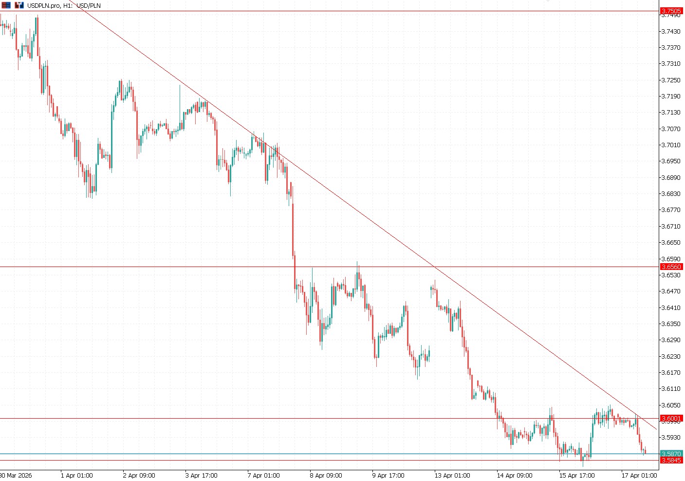 Wykres kursu dolara do złotego, interwał H1