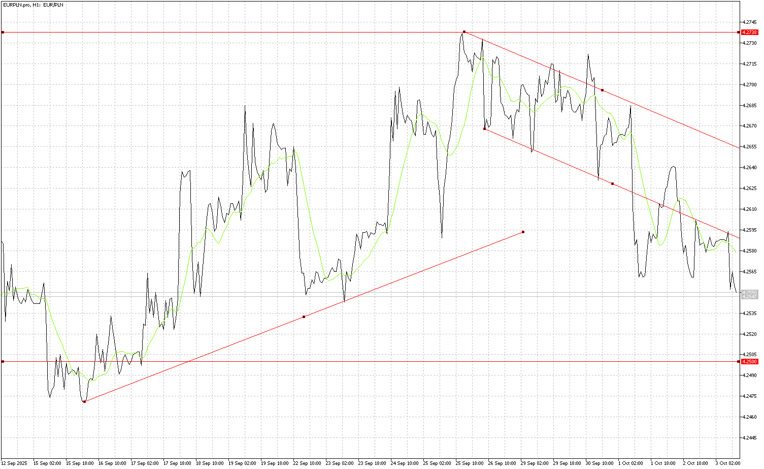 Tabela. Maksima i minima głównych walut. Zakres: 20.09.2025 – 03.10.2025