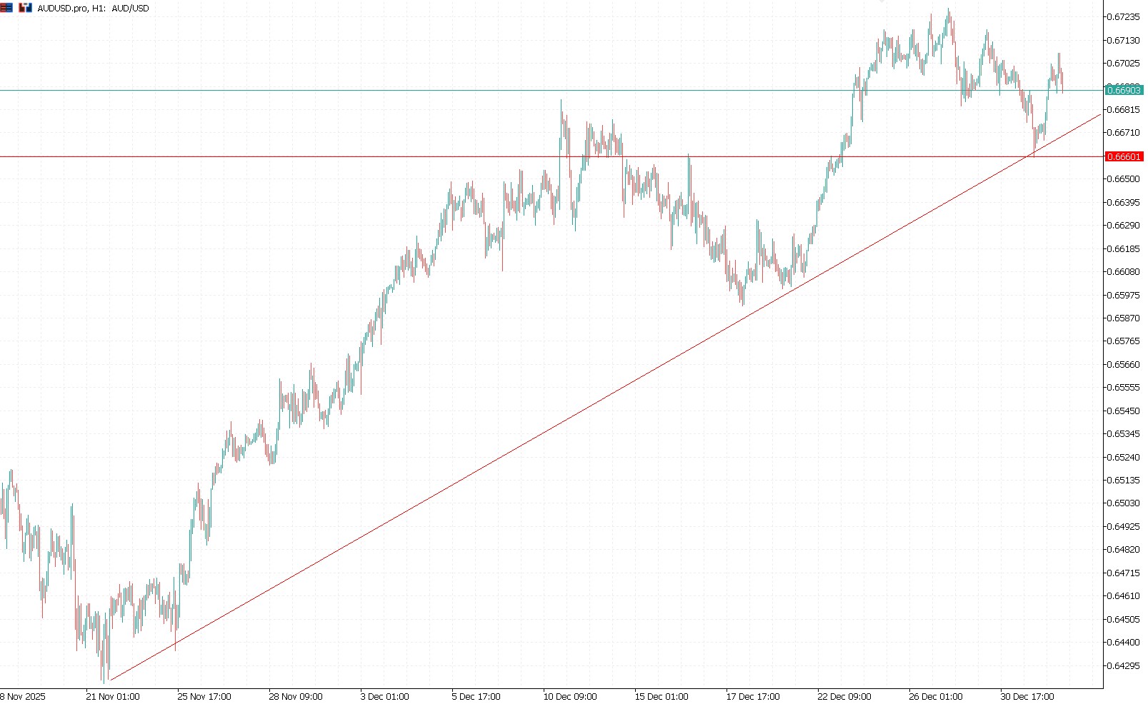 Wykres kursu dolara australijskiego do dolara amerykańskiego, interwał 1-godzinowy