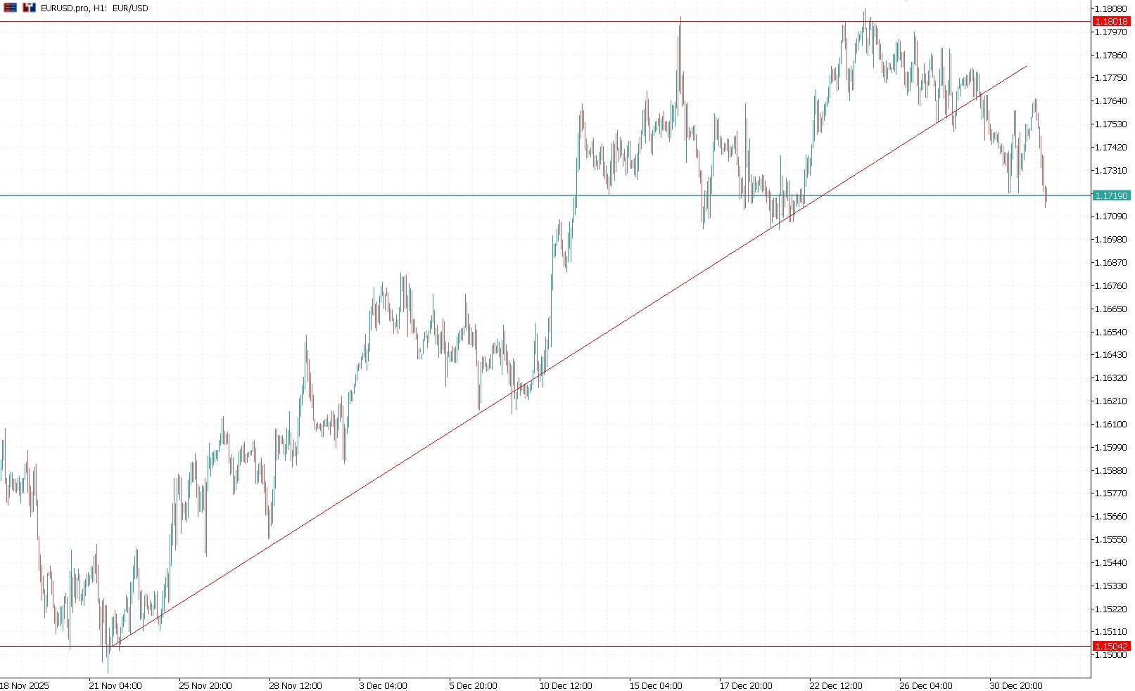 Wykres kursu euro do dolara, interwał 1-godzinowy